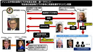 • 米司法省の決定に対する反対の論陣を張るため、ジョン・グリーソン元連邦検事を指名し、フリン元中将の起訴取り下げに対する反対弁論を依頼した。
